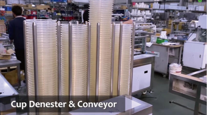 Ligne de production automatique de scellage de contenants pour tous types de gobelets et barquettes, avec une cadence de 15 à 60 cycles par minute (voire plus) en mode découpe et scellage. La capacité de production est personnalisable selon vos besoins. Elle peut être équipée de diverses options pour optimiser votre ligne de production : désempileur de gobelets/barquettes, système de remplissage, codeur de date, etc. Réduisez vos coûts de main-d'œuvre et augmentez votre productivité.