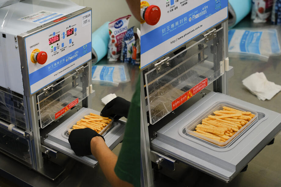 CheeseSugar a choisi la scelleuse de barquettes PH-59L de Phoenixes comme principal équipement de production, permettant un scellage à haute efficacité tout en conservant une apparence raffinée et haut de gamme.